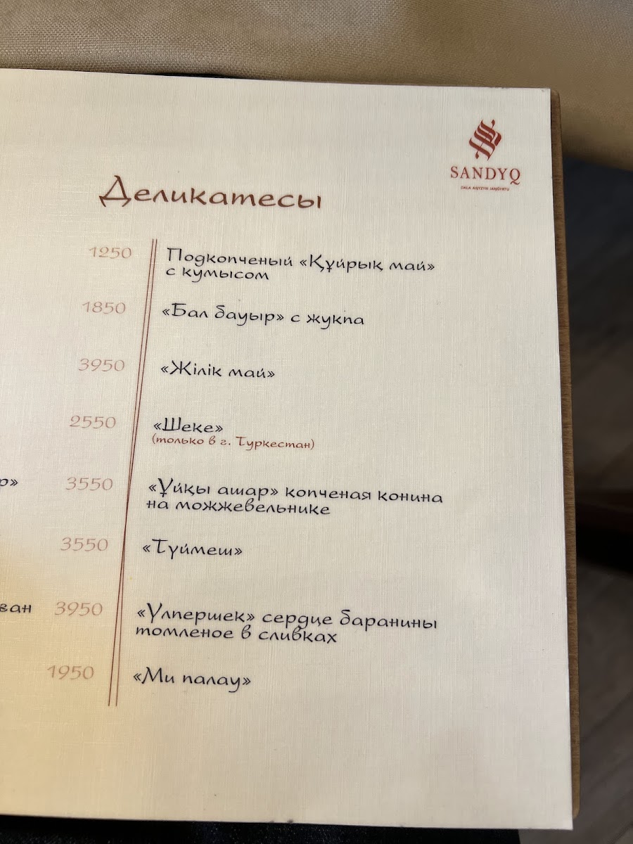 At Sandyq, you can indulge in authentic dishes, with a must-try being the renowned Beshbarmak, paired perfectly with a yogurt-based sauce and chili oil. Many patrons rave about their horse meat dishes, a unique delicacy that is both surprising and delightful. The use of local ingredients enhances the authenticity of each dish, making every bite a genuine taste of Kazakhstan.